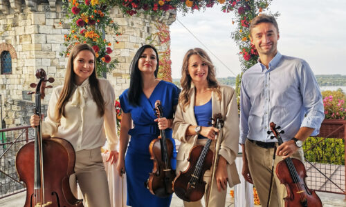 Na venčanjima je naš kvartet uglavnom zadužen za uvodni deo (od oko sat vremena), kada se zvanice okupljaju. Često sviramo i pesmu za ulazak mladenaca (najčešće strofa i refren). Po želji, pratimo i ulazak deveruša, devojčica koje nose cveće… Sve po željama, potrebama i planu budućeg bračnog para.